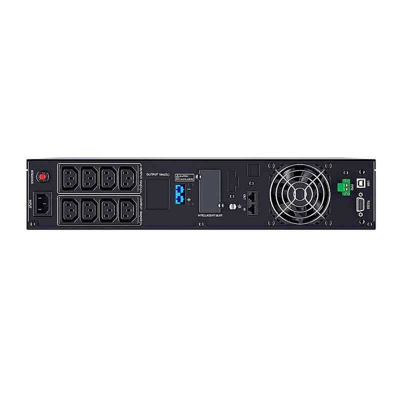 Органы управления представлены информативным ЖК-дисплеем с функцией автоповорота изображения при смене ориентации корпуса. Интерфейс позволяет производить тонкую настройку рабочих параметров, отслеживать статус системы и диагностировать неисправности. Конструкция предусматривает два варианта монтажа - напольную установку или размещение в 19-дюймовой стойке (с дополнительными рельсами). Модульная архитектура устройства поддерживает подключение различных опций, включая SNMP-адаптер для организации удаленного мониторинга и управления.